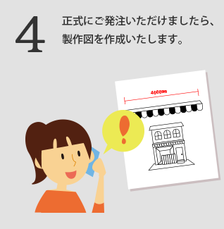 弊社で責任をもって出来ることでしたら何でも対応いたします。看板、カーテン 内装、家具什器等、弊社が図面から対応いたします。